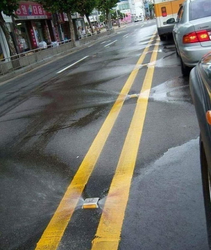 In South Korea, rain water is stored in the road studs and streets are cleaned by them through the hydraulic system like a sprinkler.